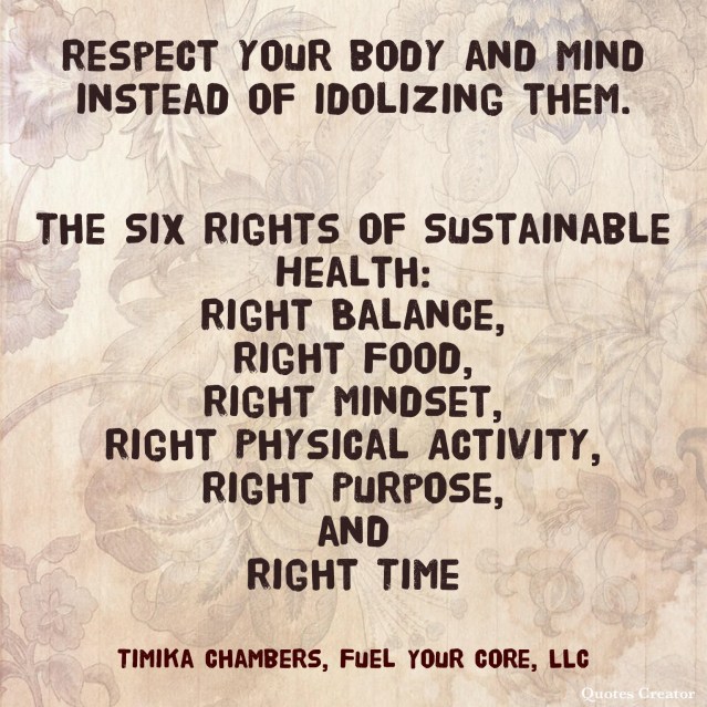 The desire for self-care is not so that we can look like someone else or feel good about ourselves. Feeling good about ourselves is a secondary reward. Knowing that we are here for a purpose must be the desire to fuel self-care. We choose to take care of our bodies because our bodies help us to fulfill our callings.