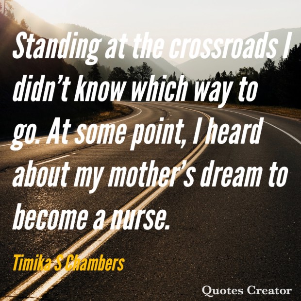 Irate about my father’s interference with my mother’s dream, I committed myself to nursing. Within minutes of hearing my mother’s story, I said, “he may have stopped you, but he wont stop me.”